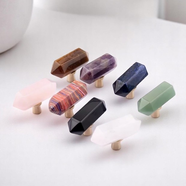 天然礦石單孔拉手 材質:天然礦石 顏色: 虎眼石、青金石、黑曜石、彩虹石 尺寸: 長方形:長7CM*高3.7CM (稜角對稜角直徑2CM) 石材為天然形成,可能存在紋理差異,以上不屬於質量問題 **下單務必備註板厚,以避免螺絲庫存不足,導致補發需較長時間。 如無告知,螺絲一律按常規M4*2.5CM 適用板厚約1.8CM配置。