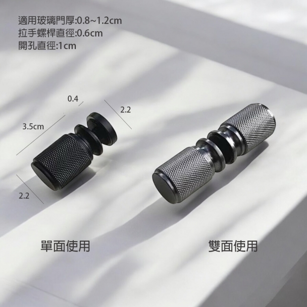 304不鏽鋼 浴室玻璃拉手 材質:304 不鏽鋼 尺寸: 長3.5CM*高2.2CM (單邊尺寸) **下單務必備註板厚(或 玻璃厚),以避免螺絲庫存不足,導致補發需較長時間。 如無告知,螺絲應常規適用厚度0.8~1.2CM配置。