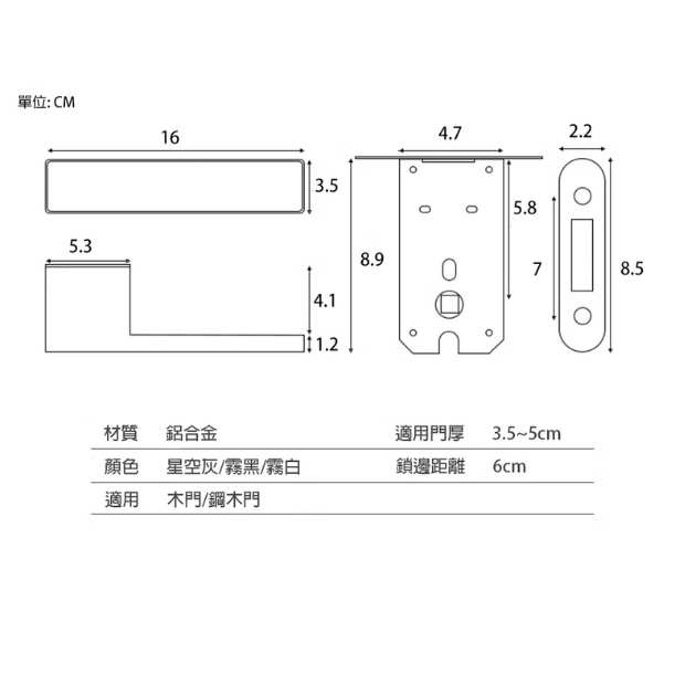 適用門厚: 3.5~5CM