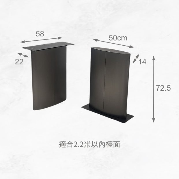 雙影長桌腿-2個一組(不含檯面) 尺寸: 頂托 58CM*22CM*72.5CM 、底 50CM*14CM*72.5CM**適合2.2米以內檯面 材質:不鏽鋼1.5加厚 / 電鍍拉絲紋理 顏色:灰鈦啞光