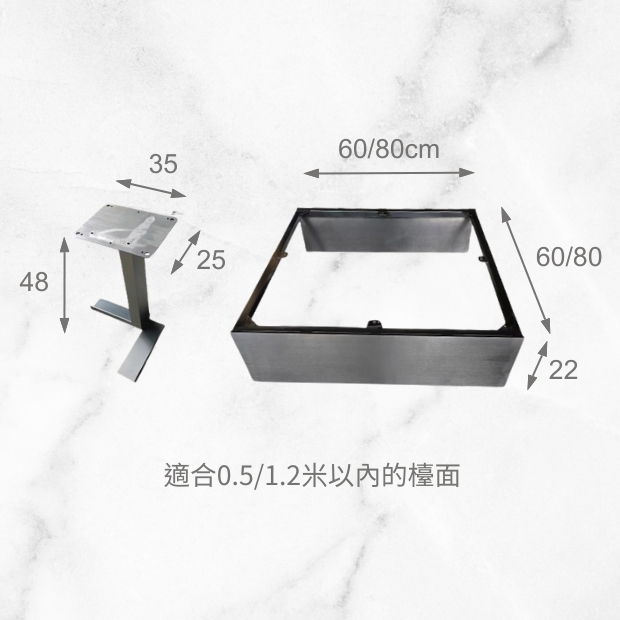 - 尺寸: 方桌 60CM*60CM*22CM / 80CM*80CM*22CM (兩種尺寸可選) **適合1.2米 以內檯面