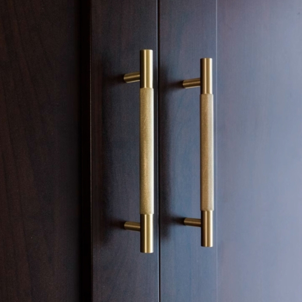 黃銅網格圖紋雙孔拉手